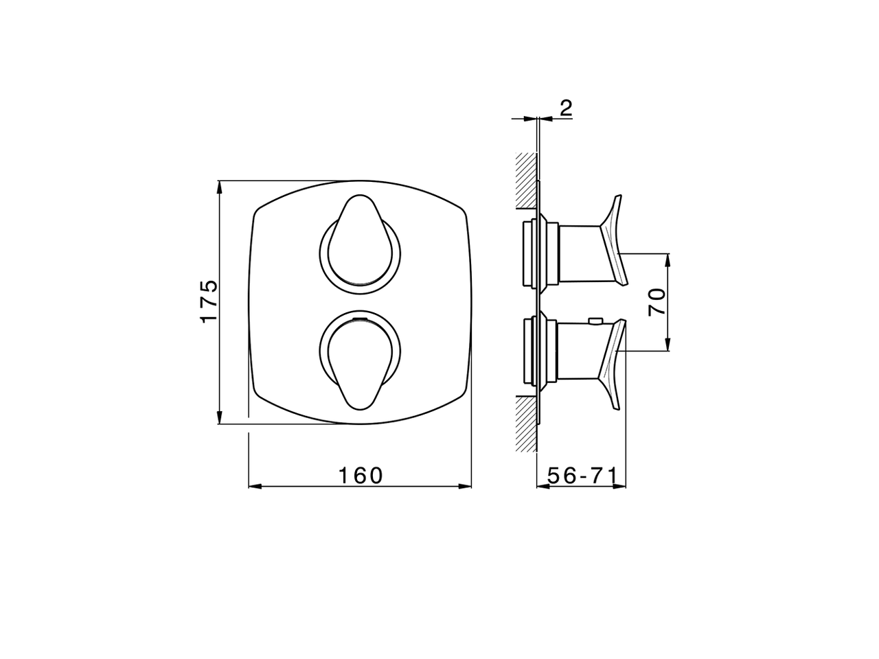 Parte esterna termostatico doccia incasso 2 uscite THERMO_HC018100