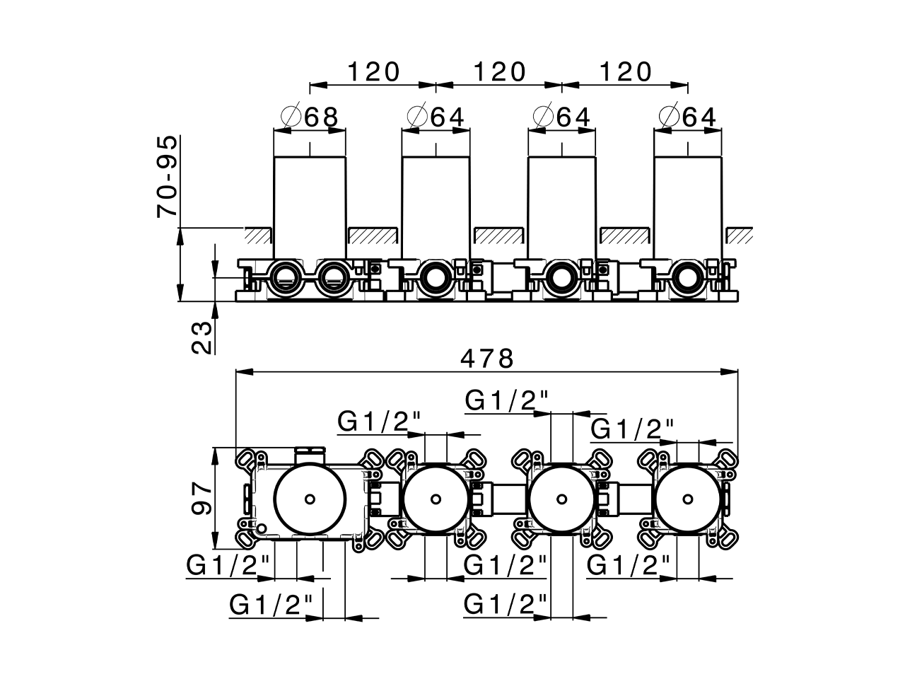 Parte incasso termostatico 3 funzioni PUSH&SHOWER_ZB0G63R0
