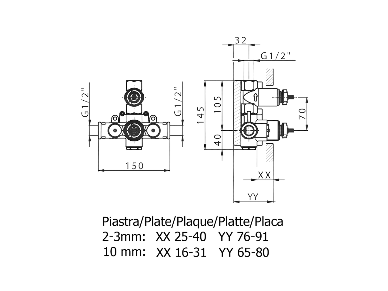 Parte incasso termostatico doccia 1 uscita INCASSO_ZB007301 - v1