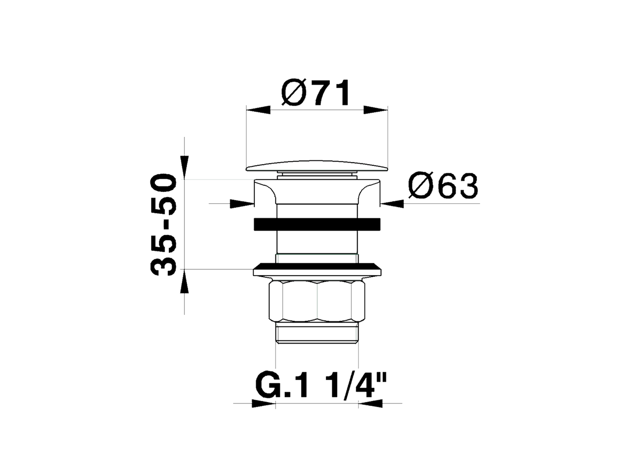 Piletta 1"1/4 per lavabo,sempre aperto,per sistema scarico senza troppo pieno,per spessori max 80 mm