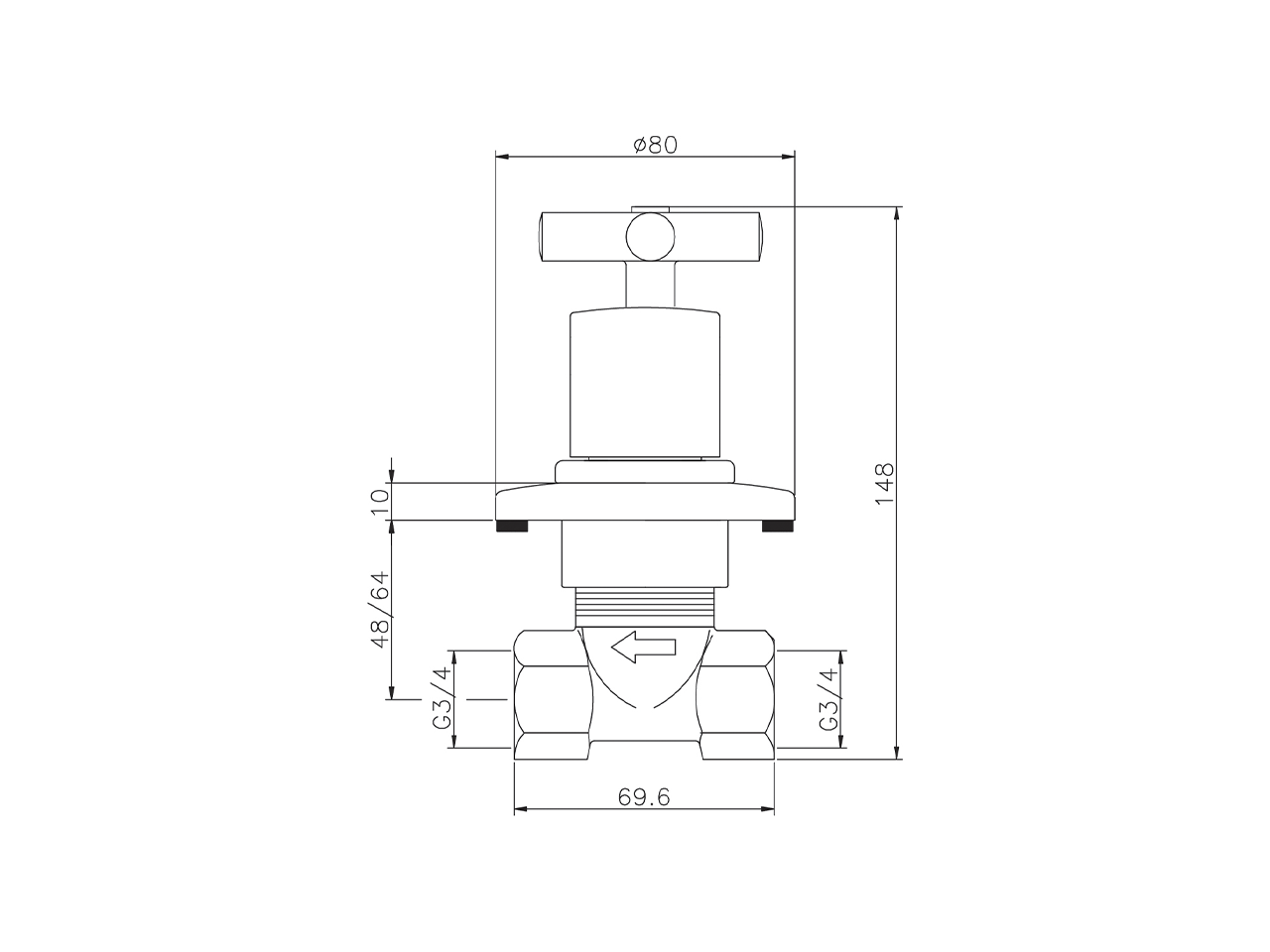 Rubinetto d'arresto incasso,uscita 3/4" F