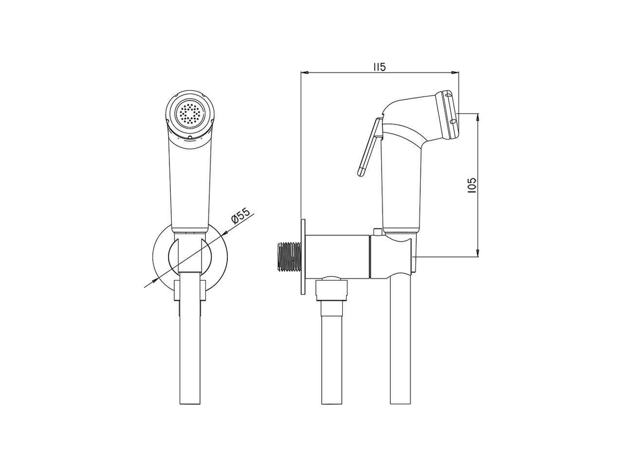 Set doccetta igienica completo,supporto murale tondo,apertura acqua singola,doccetta igienica in ABS,flex PVC 120 cm