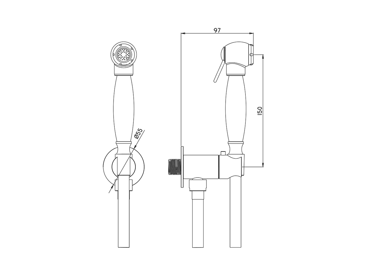 Set doccetta igienica completo,supporto murale tondo,apertura acqua singola,doccetta igienica in Ottone,flex PVC 120 cm