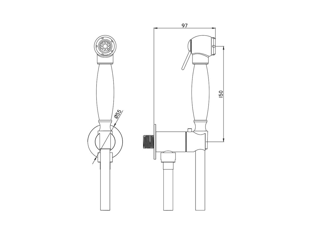 Set doccetta igienica completo,supporto murale tondo,apertura acqua singola,doccetta igienica in Ottone,flex PVC 120 cm