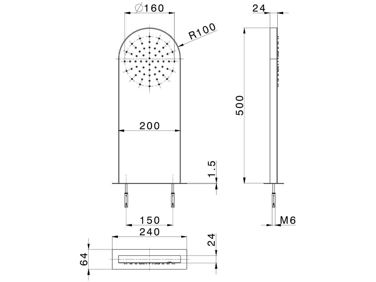 Soffione a parete rettangolare stondato ZEN_ZS122020