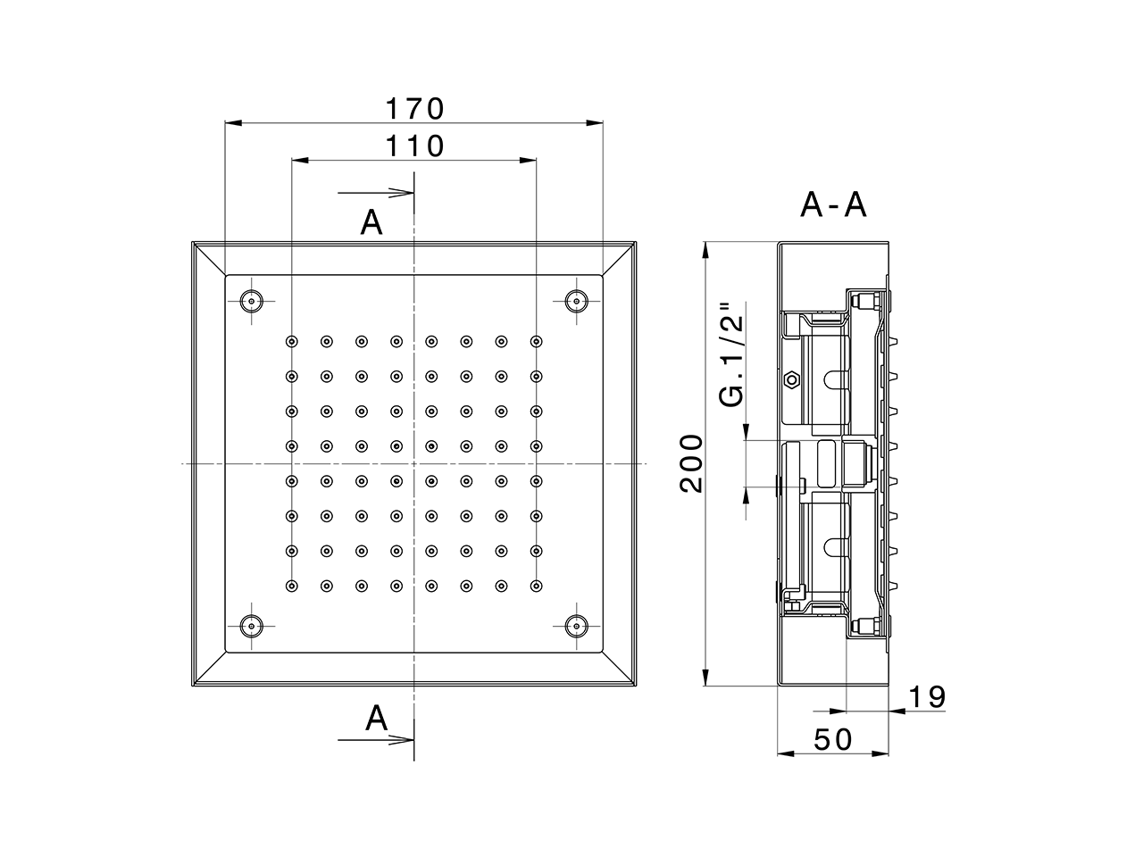 Soffione a soffitto con cromoterapia 200x200 mm ZEN_ZS1C0240