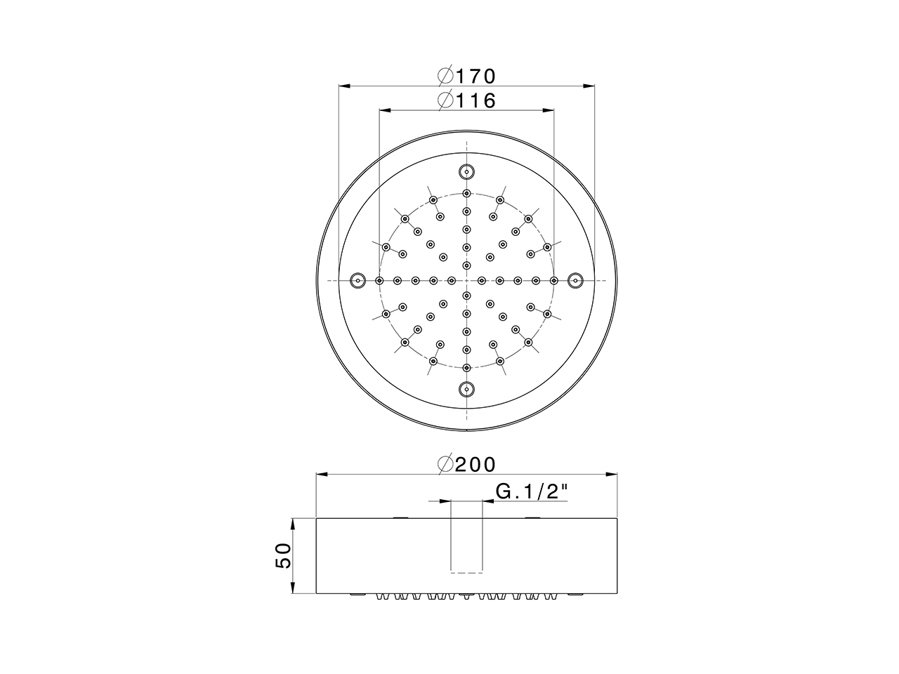 Soffione a soffitto con cromoterapia Ø 200 mm ZEN_ZS1C0250