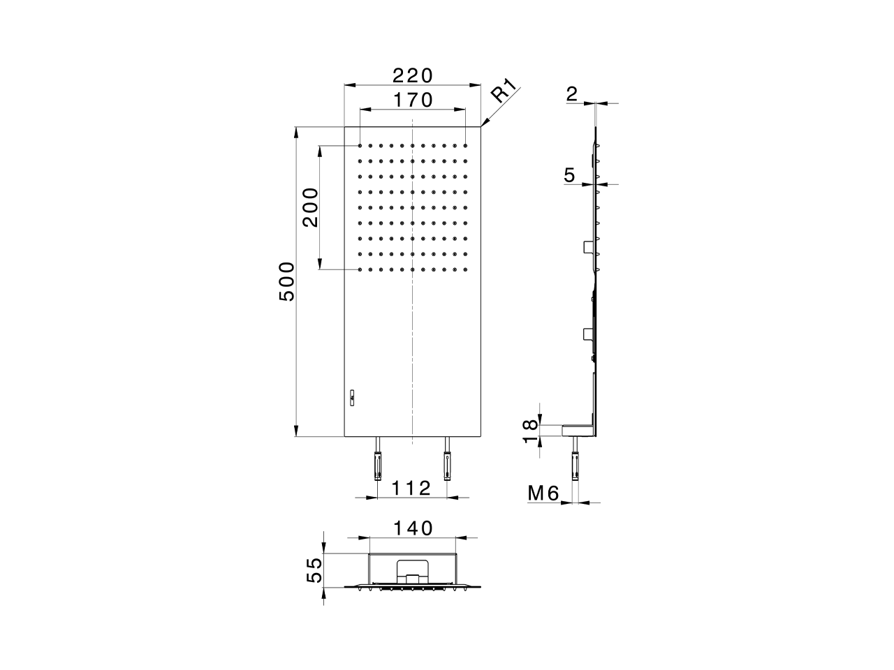Soffone a parete 500x220 mm,funzione pioggia,con valvola di sicurezza brevettata,acciaio inox AISI 304